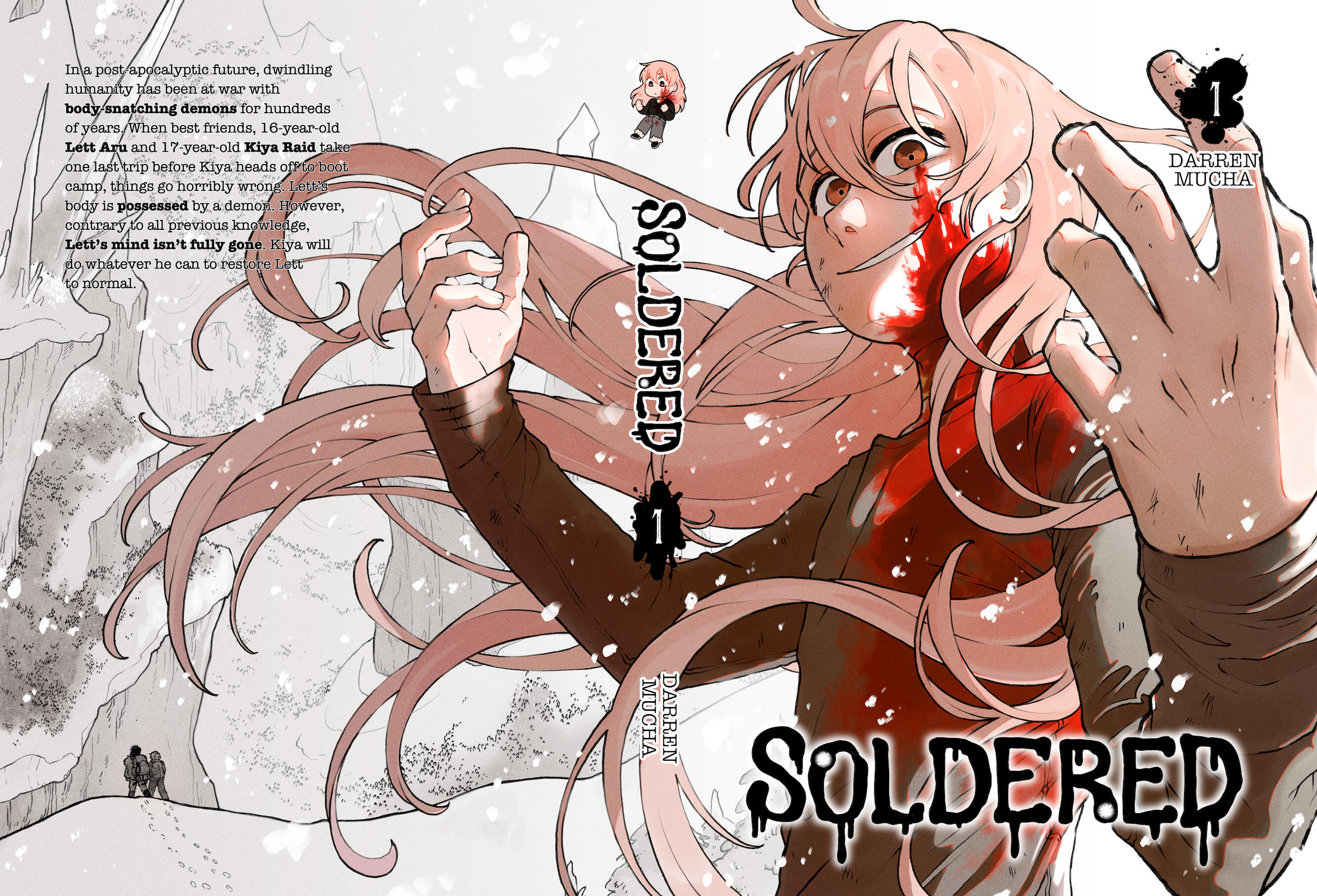A slow-burn Boys love story, set in a post-apocolyptic future. I describe Soldered to myself as a dark fantasy, psych & body horror story that's wrapped up in a cute romance.